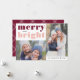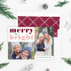 A modern “merry & bright” design with bold serif typography in rich burgundy and soft blush. The clean two-photo layout keeps the focus on your favorite images while the minimal name + year line adds a polished finish. The coordinating burgundy argyle back brings a classic pattern touch to the set.