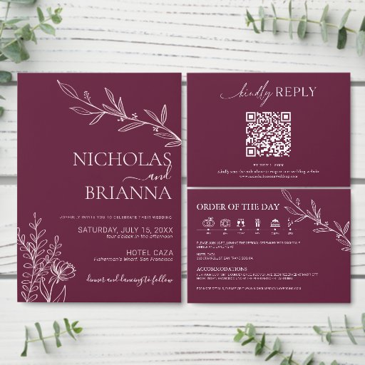 Modern Burgundy Boho Wedding Simple Elegant RSVP Card