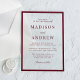 Announce your wedding with rich, refined style using this burgundy border acrylic wedding invitation. The design features a deep burgundy frame set on a clear acrylic background, creating a striking yet timeless contrast within a minimalist layout. Classic burgundy serif lettering paired with a calligraphy script accent adds a polished and sophisticated finish. Ideal for formal ceremonies, traditional venues, and modern classic weddings, this acrylic invitation provides an elegant and enduring foundation that coordinates seamlessly with a cohesive wedding stationery suite.