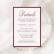 Modern Burgundy Border Wedding Details Enclosure Card