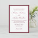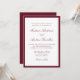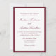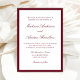 Set an elegant, romantic tone for your wedding with this burgundy wedding invitation, framed by a deep burgundy border that adds warmth and sophistication to the design. The couple’s names are showcased in flowing calligraphy script, with the wedding details arranged below in classic serif lettering for a balanced and timeless layout. The rich color palette and clean structure create a polished presentation well-suited for formal ceremonies, traditional venues, and refined evening weddings.