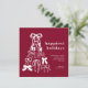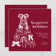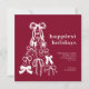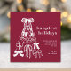 Modern Burgundy Bow Christmas Tree Holiday Card, a unique holiday card features hand-drawn bows arranged into a whimsical Christmas tree, highlighted against a burgundy background, and "Happiest Holidays" as the main message. The modern design combines festive charm with a stylish bow design for a truly standout card. Customise with your message and family name or names.