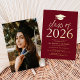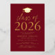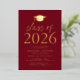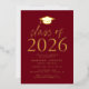 Invite guests to celebrate the grad with our modern class of 2025 graduation party invites. The invites feature a graduation cap at the top with "Class of 2025" displayed in gold foil lettering with a burgundy background. Personalise the invites by adding the graduate's name, school, and graduation party details. The gold foil graduation party invites reverse to display the graduate's photo.