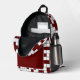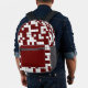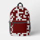 This backpack features a geometric grid design in burgundy, black, and white. The squares are coloured in a random pattern and you can edit the colours in the Design tool. Great for school, gym, or travel.
