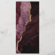 This elegant, modern wedding menu features a watercolor burgundy agate background trimmed with silver faux glitter. The text appears in elegant gold-coloured handwriting and sans serif fonts on a dark rectangle. The agate design is repeated on the reverse.