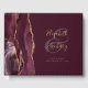 This elegant wedding guest book features a burgundy red watercolor agate design trimmed with faux gold glitter. Easily customise the gold-coloured text on a burgundy background, with the names of the bride and groom in whimsical handwriting calligraphy over a large ampersand. Add additional text of your choice to the front and spine.