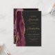 The left-hand edge of this elegant modern wedding invitation features a burgundy watercolor agate border trimmed with faux gold glitter. The customisable text combines gold-coloured script and sans serif fonts on a slate black background. The reverse side features a matching burgundy and gold agate design.