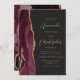 Modern Burgundy Gold Agate Script Slate Wedding Invitation