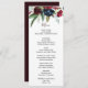 This modern burgundy navy blush floral dinner menu card is perfect for a simple wedding. The design features red, burgundy, navy, purple, blue and blush beautifully hand-painted flowers and green leaves.