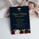 A mix of gold script and lovely burgundy navy watercolor flowers. You can customise this graduation invitation template with your own details. You can change the colours, wording, text and other features.
