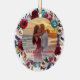 Modern Burgundy Navy Floral Our First Christmas Ceramic Ornament