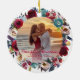 Modern Burgundy Navy Floral Our First Christmas Ornament with couple photo.