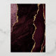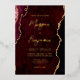 This elegant wedding invitation features a background image of burgundy red watercolor agate trimmed with faux gold glitter. The customisable text combines gold-coloured modern handwriting, copperplate and italic fonts. The reverse side features a coordinating burgundy and gold agate design.
