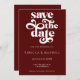 With a simple and modern design and retro typography, this elegant save-the-date announcement fits any wedding theme. It features a modern burgundy background and minimalist, and simple typography.