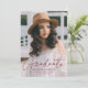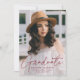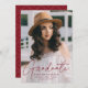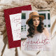 Invite guests to celebrate the grad with our stylish photo graduation invitations. The graduation invitations feature the graduate's vertical photo with "Graduate" in a burgundy modern calligraphy script overlay. Personalize the front of the modern graduation invite by adding the graduate's name, school name, and graduation year. The invite reverses to display your graduation party details and a trendy burgundy and white dotted geometric pattern.