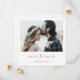 This simply chic square photo wedding save the date card template features an elegant, minimalist, modern design. Please browse our shop for versions of this design in a rectangular format in flat card, postcard and magnet formats in various colours! The front features your first names under your favourite photo and a 'save the date' message conveyed with a striking blend of two distinct fonts, with 'the' in a light, flowing script between the rest of the message, which is in upper case with a bold, crisp formal look.This design element is included on both sides and can't be altered, though you might choose to delete it on the back for an even simpler look. The 'Save the Date' text on the front is an elegant shade of burgundy, and it's in black on the back. And on the back you can of course in addition to replacing our sample info with your own, delete text fields that you don't need, or change the wording, as well as change font, size and colour. The default colour for your names text on the front is black, and the text on the back is a mix of black and slightly softened black. The default background colour on both sides is set as transparent, to let the paper colour simply serve as the base tone. But you can edit this and change the look of one or both sides in this regard as well to suit your style. Customise this elegant minimalist wedding save the date flat card template with zazzle's intuitive editing tools, your favourite photo and your inspiration and make it uniquely yours!