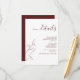 Introducing the Modern Burgundy Script Botanical Wedding Details Enclosure Card! This beautiful card is perfect for adding a personal touch to your wedding invitation suite. Designed to coordinate with wedding invitation in the same theme, the modern floral line art and elegant calligraphy make this card a stunning way to include all of the important information for your guests. You can even include your wedding website on the card for easy reference. The card holds up to 26 lines of text, so you can be sure to include everything you need. Whether you're looking for a way to add a personal touch to your wedding details or just want a beautiful and modern way to include all the important information, the Modern Burgundy Script Botanical Wedding Details Enclosure Card is perfect for you! Contact designer for matching products. View collection here: https://www.zazzle.com/collections/modern_burgundy_script_botanical_wedding-119813557923348380 Copyright Elegant Invites, all rights reserved.