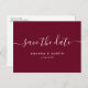 Modern Burgundy Script Wedding Save The Date Announcement Postcard