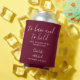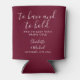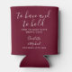 An elegant burgundy wedding favour can cooler featuring stylish signature script names and special message and date set in modern typography. Designed by Thisisnotme©