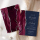 Modern Burgundy Silver Agate Navy Blue Wedding Invitation