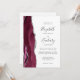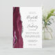 The left-hand edge of this elegant modern wedding invitation features a burgundy watercolor agate border trimmed with silver faux glitter. The customisable text combines handwriting, copperplate and italic fonts in charcoal grey on a white background. The reverse side provides space for wedding details on a solid white background, along with a QR code guests can scan to visit your website and RSVP, which saves the cost of printing and mailing separate RSVP cards.
