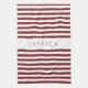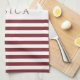 Modern Burgundy Striped Pattern Name kitchen towel.