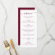 Elegant custom burgundy wedding menu with a modern script font. Easily personalise online. Matching items available to complement this minimalist burgundy wedding menu.