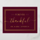 This simple yet modern and elegant burgundy and foil Thank You postcard is an easy way of sending your heartfelt thanks. "Forever Thankful" is featured boldly across the front along with "Mr. and Mrs." in the foil colour of your choice. The text is highlighted by a foiled frame. The burgundy background can easily be changed to any colour of the rainbow. A handwritten note on the back of the postcard gives it a personal touch.