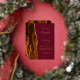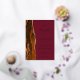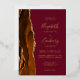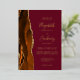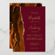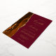 The left-hand edge of this elegant modern wedding invitation features a burnt orange watercolor agate border trimmed with faux gold glitter. The customisable text combines handwriting, copperplate and italic fonts in real gold foil on a burgundy background. The reverse side features a matching burnt orange and gold agate design.
