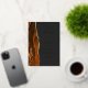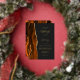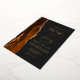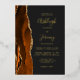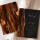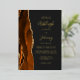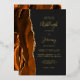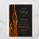 The left-hand edge of this elegant modern wedding invitation features a burnt orange watercolor agate border trimmed with faux gold glitter. The customisable text combines handwriting, copperplate and italic fonts in real gold foil on an off-black background. The reverse side features a matching burnt orange and gold agate design.