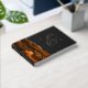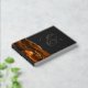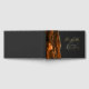 This elegant wedding guest book features a burnt orange watercolor agate design trimmed with faux gold glitter. Easily customise the real gold foil text on an off-black background, with the names of the couple in whimsical handwriting calligraphy over a large grey ampersand. Add additional text of your choice to the front and spine.