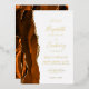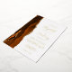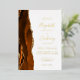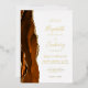 The left-hand edge of this elegant modern wedding invitation features a burnt orange watercolor agate border trimmed with faux gold glitter. The customisable text combines handwriting, copperplate and italic fonts in real gold foil on a white background. The reverse side features a matching burnt orange and gold agate design.