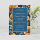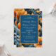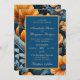 This beautiful design features burnt orange and blue flowers and is perfect for a fall or autumn wedding.