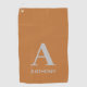 Modern Burnt Orange Monogram Personalised Mens Golf Towel