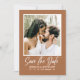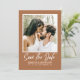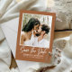 Announce your big day in style with this modern and elegant Save the Date invitation. This simple, minimalist Save the Date card is perfect for introducing your guests to your wedding day, and is sure to be treasured as a keepsake for years to come. Featuring photo of a romantic couple and classic light typography in a burnt orange background you can personalised. The backside features a QR code guests can scan to visit your website to find more details about the big day. This simple but pretty design is perfect to show off your sense of style and to let your friends and family know that you are getting married.