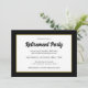 With business elegance and style, this simple minimal retirement party invitation features a thick black frame border and thin gold inset surrounding your custom text on a contrasting white background. The versatile text template may be personalise for any type of event you wish. Shown here as a retirement party invitation, all of the text may be edited to your liking.