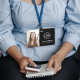 Modern, minimal, black, corporate ID badge that can easily be customised with photo, name, information, QR code. Create as many as you need for your business employees.