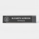 Modern black desk name plate with your business or organisation's logo. Add a name and title in simple white typography.