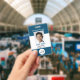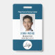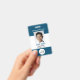 Simple, elegant employee ID Badge. Design features single photo, company name, title, valid thru date , logo on the front and return address and bar code on the back.