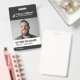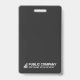 A modern employee id badge. The design features your business logo, business name and tag line. It shows a large sized employee id photo. Information can be personalised and includes the employee's name, job title and badge ID number. The back of the ID badge shows the business logo and name.
