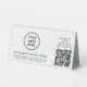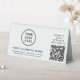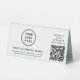 Modern table top pedestal sign for your business with your QR code for customers to scan for payment or to view a list of your products, services and prices or other information. Add your logo, business name, QR code, phone number and street address (or other information) in simple typography.