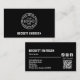 Network with these stylish black and white business cards featuring your logo and name on the front with more details, social media icons and a scannable QR Code to any URL on the back. Personalise to be uniquely yours.