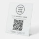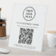 Modern table top pedestal sign for your business with your QR code for customers to scan for a list of your products, services, prices, other information or mobile payments. Upload your logo and website's QR code and add your custom text, such as company name, phone number, street address or other information in simple typography.