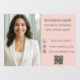 Modern business window cling with photo, contact info, and QR code. Perfect for real estate agents, salons, boutiques, and offices. Easy to customise with your own branding to create a professional and welcoming storefront display. Blush pink background, taupe coloured text.