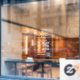 Simple, professional white Business opening hours logo and qr code window cling sign. business qr code window decals with modern fonts.