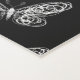 A interesting pattern of fluttering hand sketched butterflies decorate this black yoga mat, giving it a fun and whimsical feel.