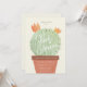 A whimsical baby shower invitation design by Stacey Meacham featuring original hand drawn watercolor prickly cactus illustration with bright floral buds in a