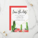 This save the date card with cactus, succulent and floral art is beautiful and trendy! The lovely script and modern lines strikes a perfect balance between elegance and modern design. Simply add your wedding information to this card for a stylish destination wedding or for a touch of the southwest!