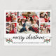Modern Calligraphy Script 5 Photo Family Photo Collage Merry Christmas Postcard includes Watercolor Christmas Holly Berries