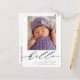 This elegant birth announcement postcard features modern calligraphy that reads "hello" and a large photo. Underneath the script lettering, you can add your baby's full name, birth date, birth stats, and your names. On the back of the postcard, you can write a custom message to loved ones.